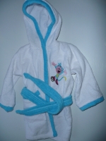 Dětský župan s kapucí je určen pro děti od jednoho roku do osmi let, je vyroben ze 100% bavlny, kvalita 480g/m2, výšivka. Vysoce savý.
